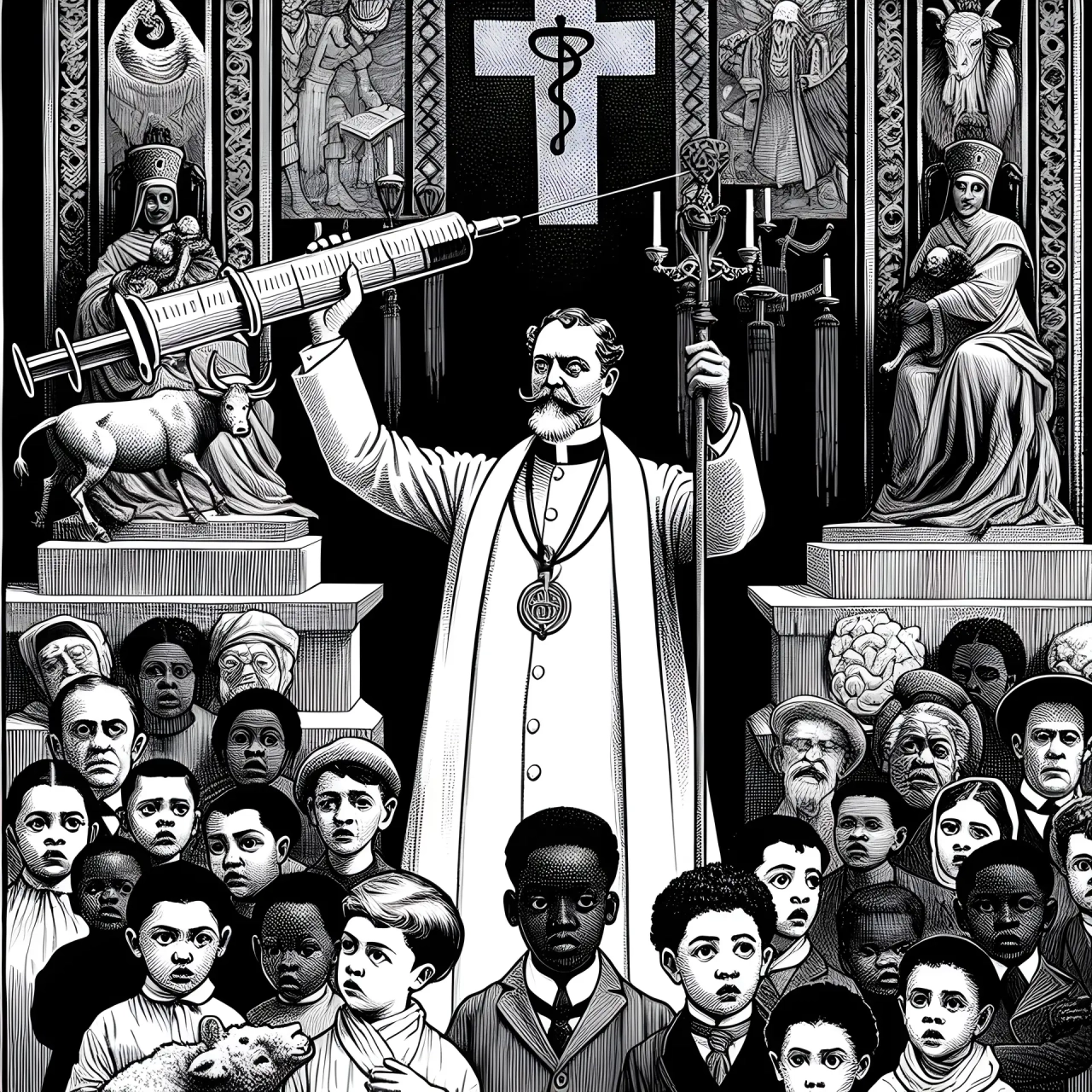 Die Priester im weißen Kittel nahmen Eiter von toten Kälbern und schnitten ihn in Kinderfleisch.